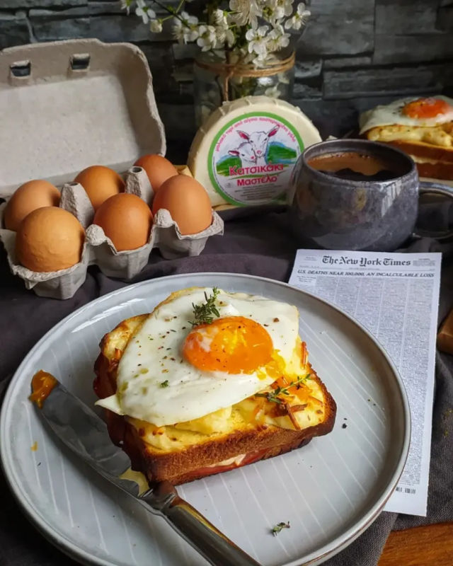 Σερβίρουμε βάζοντας σε ένα πιάτο το τοστ από πάνω το αυγό και αλατοπιπερώνουμε.