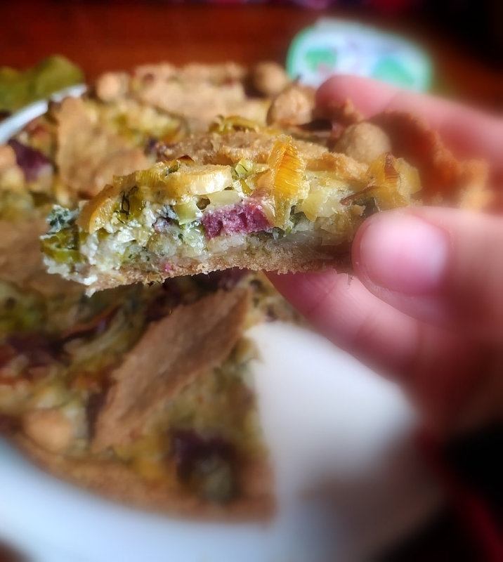 8. Απλώνουμε τη γέμιση και καλύπτουμε την πίτα μας.
