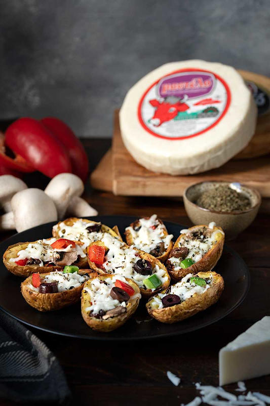 - Ανακατεύουμε τα μανιτάρια, τις πιπεριές, το κρεμμύδι, και τις ελιές σε ένα μπολ, προσθέτουμε τη ρίγανη, αλάτι, πιπέρι και το ελαιόλαδο. Γεμίζουμε τις πατάτες και συνεχίζουμε το ψήσιμο για 20 λεπτά. Κατόπιν, μοιράζουμε πάνω από κάθε πατάτα το τριμμένο τυρί και ψήνουμε για επιπλέον 15 λεπτά ή μέχρι το τυρί να γίνει μαστιχωτό. Σερβίρουμε αμέσως!