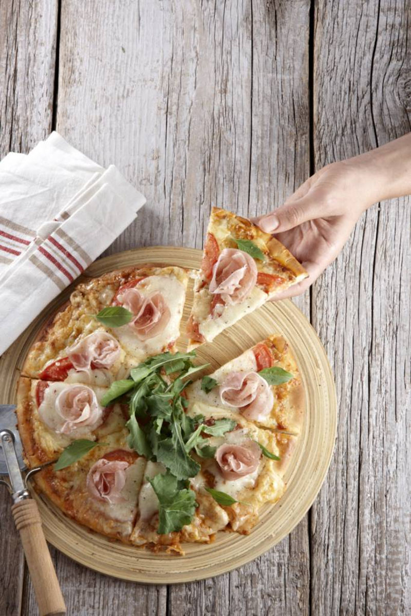 - Ψήνουμε σε προθερμασμένο φούρνο, στην κάτω σχάρα, στους 200°C για 20 λεπτά. Πριν το σερβίρισμα προσθέτουμε το ζαμπόν ή το προσούτο και λίγη ρόκα.